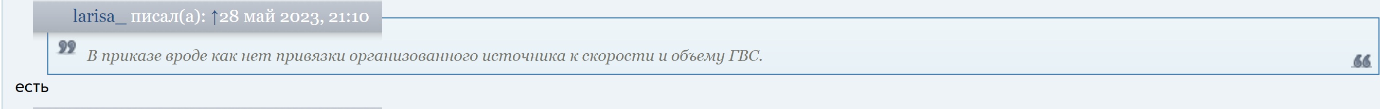 а где есть привязка орг ист к скорости и объему ГВС в 871?Лёха писал(а): 29 май 2023, 09:02 В приказе вроде как нет привязки организованного источника к скорости и объему ГВС