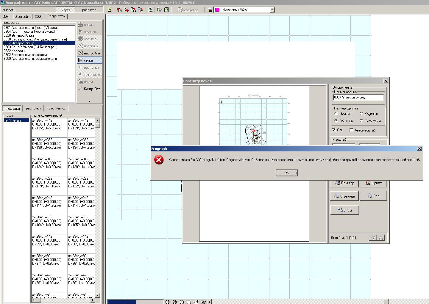 Добрый день! Проблема сегодня возникла при работе в Экографе. При загрузке результатов расчета рассеивания выдает такую ошибку (присоеденен файл).