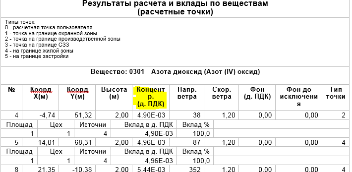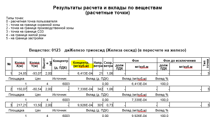 НадеждаECO, результаты в мг/куб.м при расчете максимальных концентраций отображаются для тех веществ, для которых не определена ПДКмр. У таких веществ определена только ПДКсс.