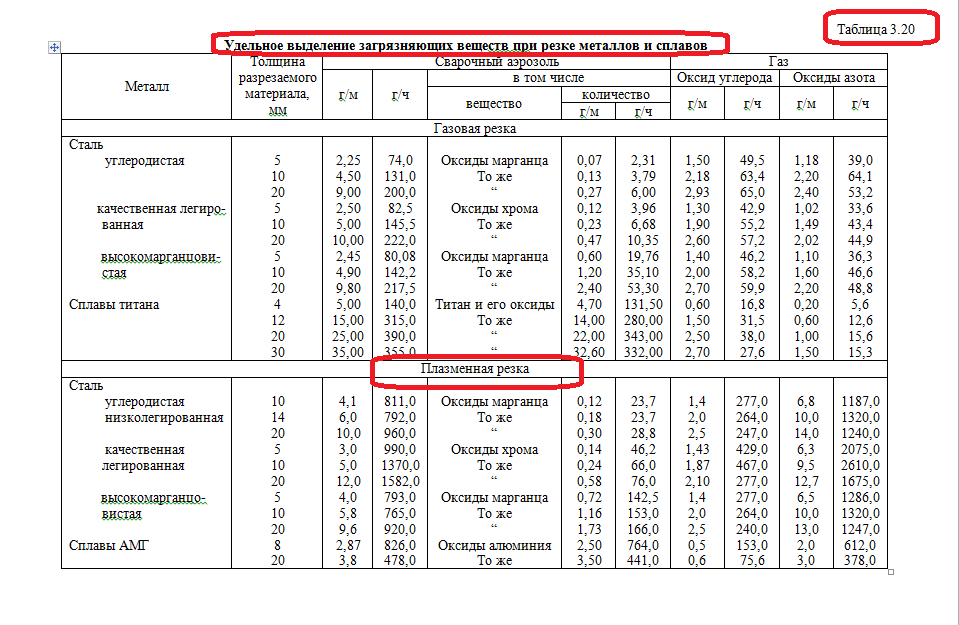 Про табл. 3.20 из методики "Приведенные в таблицах данные носят ориентировочный характер как вследствие усреднения экспериментальных и расчетных значений удельных выбросов, так и в силу многообразия технологических режимов работы оборудования"