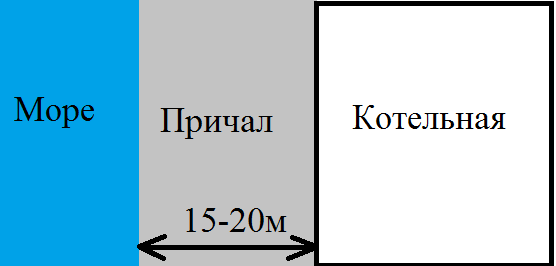 Здравствуйте, уважаемые коллеги, помогите пожалуйста со следующим вопросом: На предприятии была котельная на судне, в последующем котлы вывели из эксплуатации. Планируется разработать проект и разместить котельную (скорее всего на мазутном топливе) в здании, находящимся в 15-20 метрах от водного объекта (моря) как указано ниже на картинке, нет ли нарушений с точки зрения законодательства? а то в Украине в 100м водоохраной зоны строительство запрещено, у нас в России говорят про 200м (не знаю в каком документе они это нашли), сам в водном кодексе прочитал что строительство вблизи водных объектах разрешается, при условии что объект не оказывает негативное воздействие на водный объект, помогите разобраться