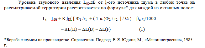 1. Расчет L, дБ (октавный уровень звукового давления (ф. с 1 по 15)) - используется для оценки шума в расчетной точке от постоянных (можно сказать стационарных) ИШ: (например: насосы, трансформаторы, побудители тяги, дымососы и т.д.) для разных случаев (из территории в помещение, из помещения в помещение, из помещения на территорию) и это же (L) используем в сравнении с нормативными данными по шуму?