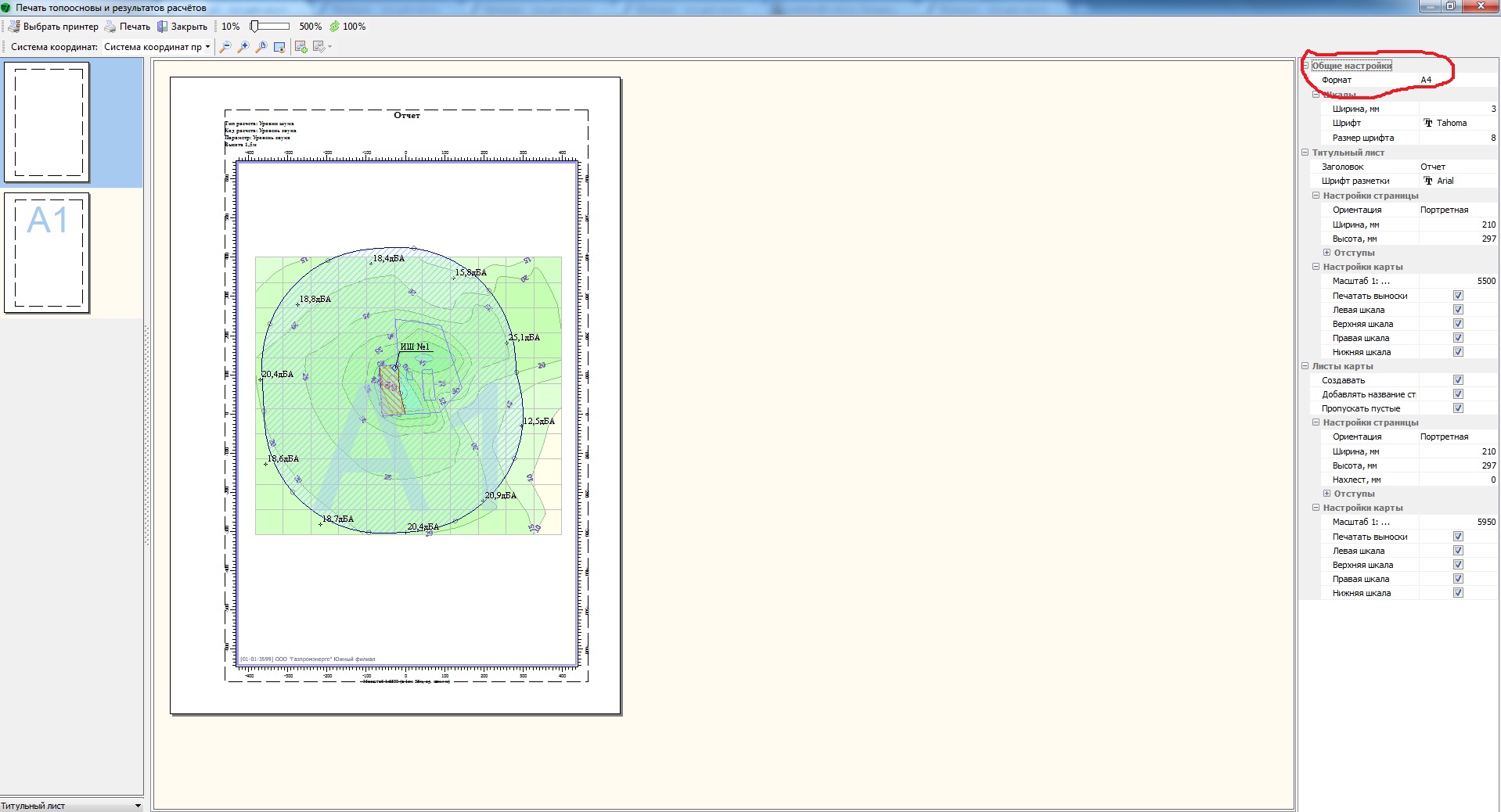 Печать топоосновы и результатов расчетов