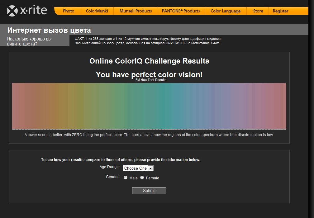 "У Вас идеальное восприятие цвета"