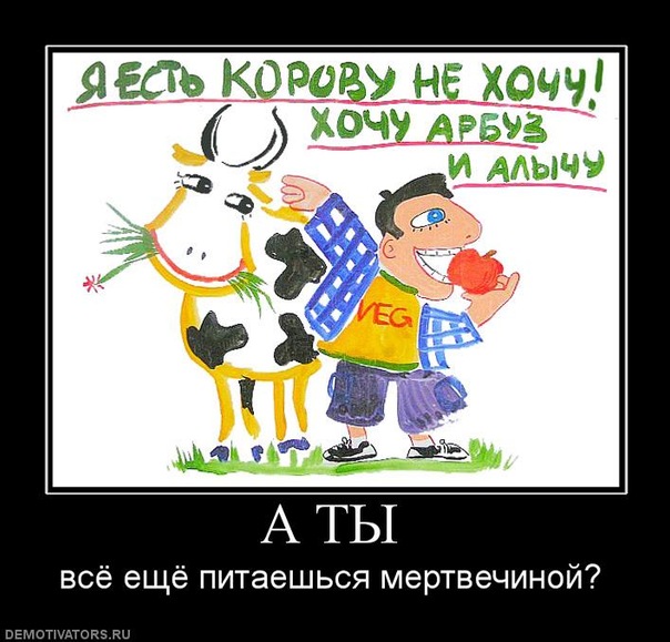 "А ты все еще питаешься мертветчиной?" заставляет вспомнить анекдот про кровь убитых помидоров...