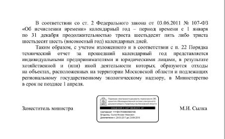 Artrem, такая же ситуация: лимиты получены в начале 2015 году в РПН по ЦФО, с 10.09.2015 появилось 903 постановление, по которому мы "сами определяем к какому уровня надзора относимся", с 2016 МинЭко МО утвердил свою методику и стал принимать тех. отчеты, в этот замечательный 2016 я сдала отчеты в оба органа, а в 2017 я сдала только в МинЭКО МО, т.к. встала на учет как регионал. в 2016 писала в РПН по ЦФО с просьбой разъяснить куда предоставлять отчет, если по критериям я не отношусь к федералам, но лимит они мне выдали, в отчет они мне процитировали 89 ФЗ. Недавно написала письмо в МинЭко МО, конкретного ответа о предоставлении в определенный орган не получила. ответ во вложении. P/s/ в ответе конкретно написано про отчетный период тех отчета (365 дней-календарный год), никаких привязок к дате утверждения лимита.