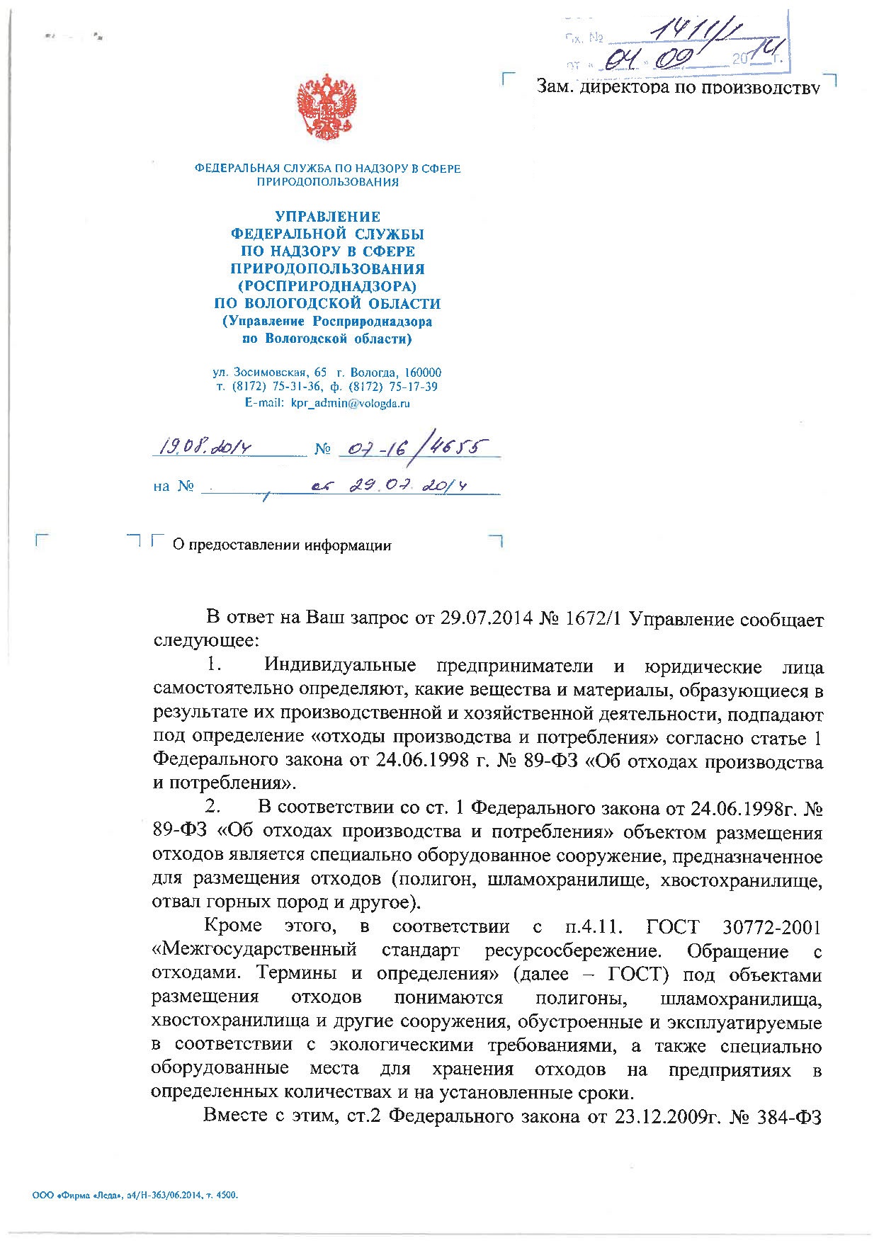Re: Название отхода и код по ФККО-2014