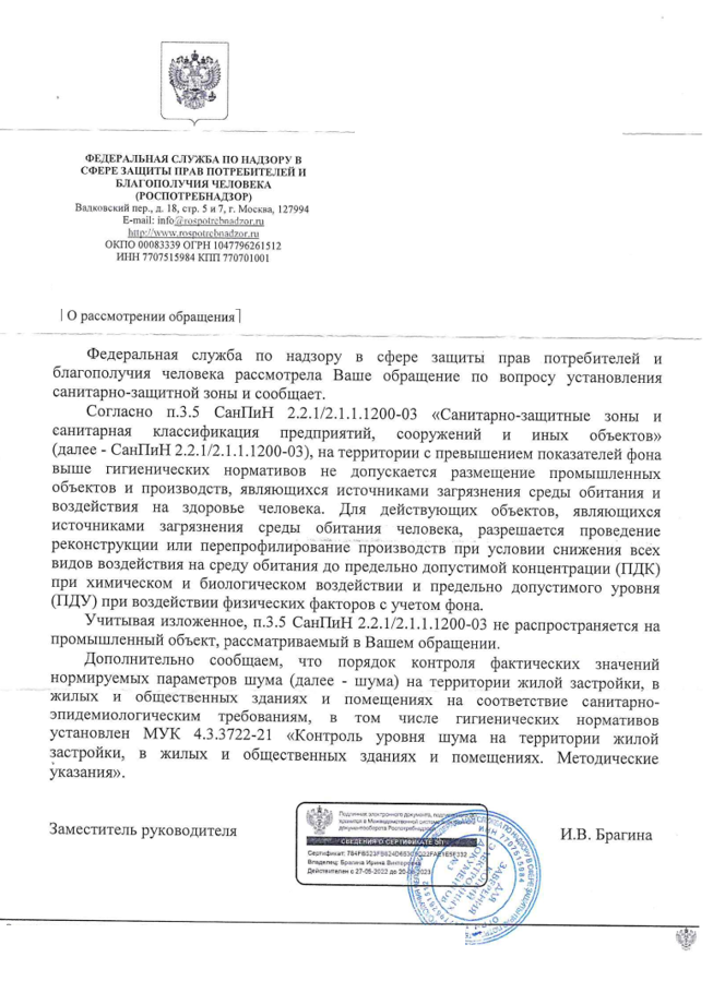 Но эксперт в территориальном Роспотребнадзоре, говорит что его мнение на счет необходимости учета шума не меняется и его учитывать нужно.