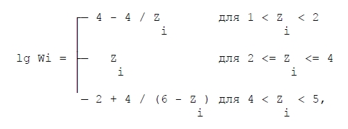 Сначала рассчитывается десятичный логарифм Wi по одной из этих формул: