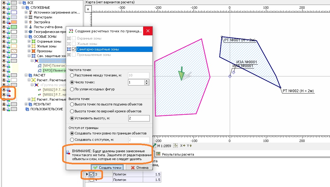 По СЗЗ взяты 8 р.т. и самое интересное что в р.т. которая около источников (трубы котельной) концентрация вещества равна 0, а в остальных 7 точка больше 0,1 ПДК, Такое может быть?