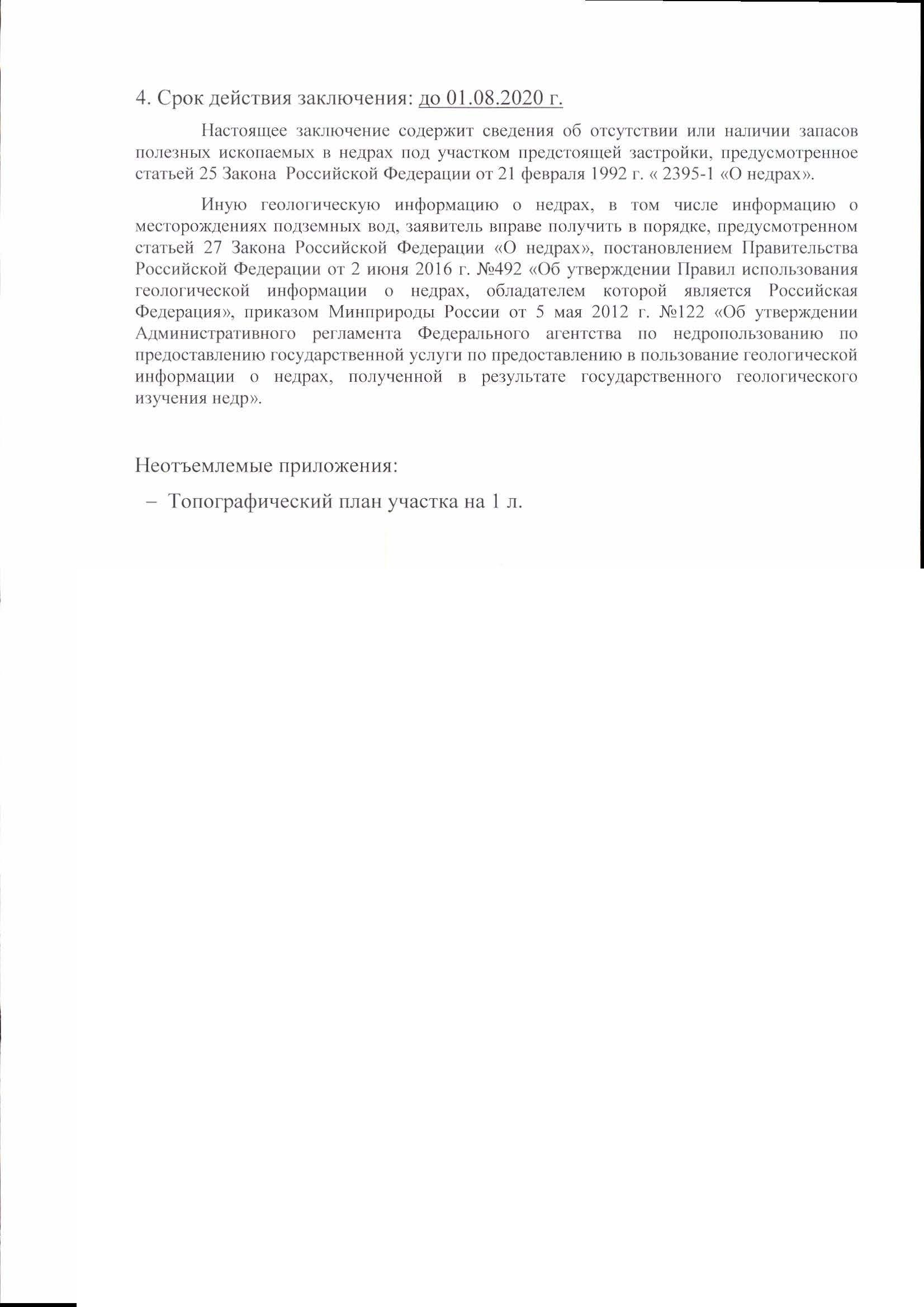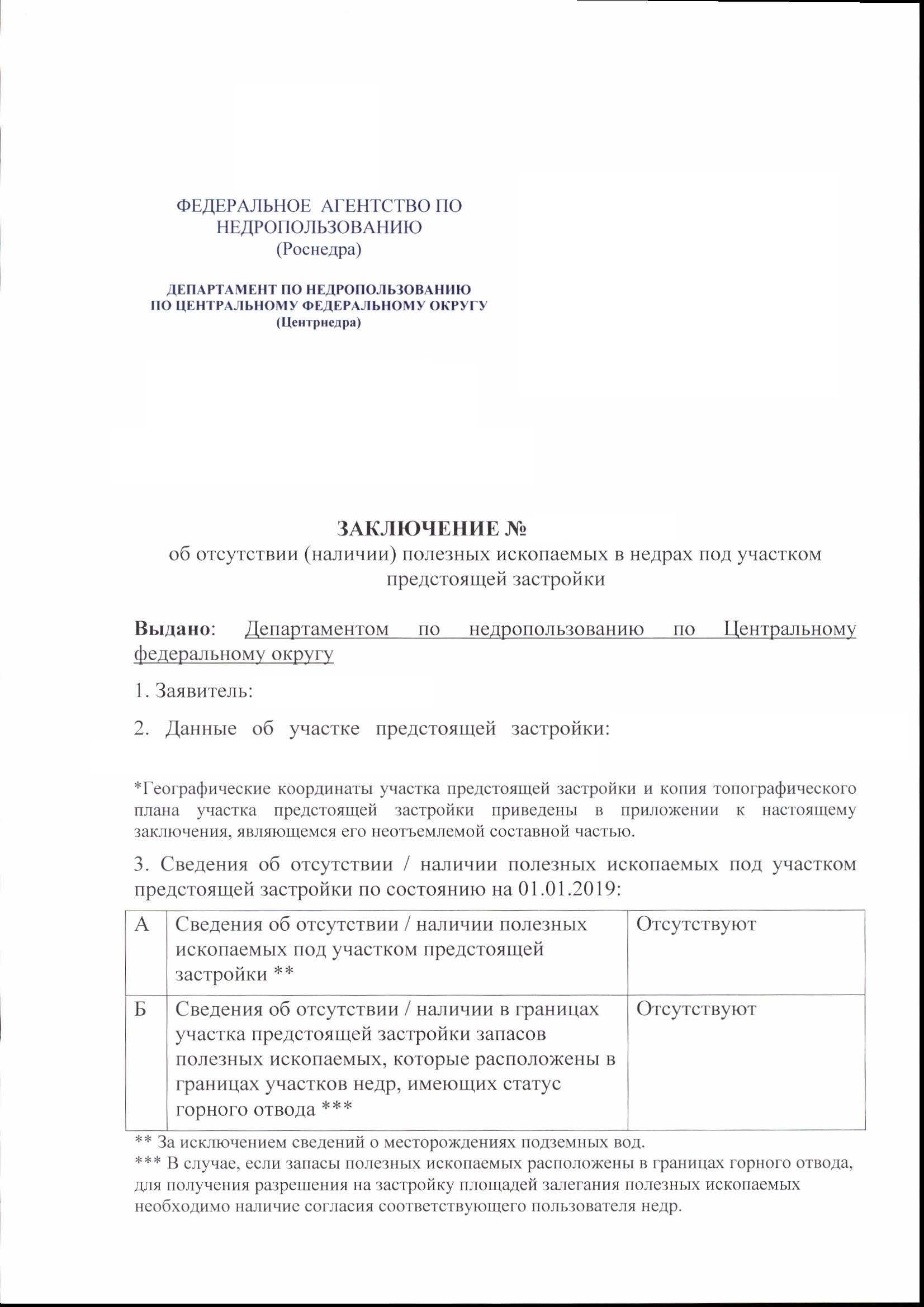 Добрый день! Получил новый ответ от департамента недропользования, в котором они пишут, что полезные ископаемые под участком застройки отсутствуют, и примечание * за исключением сведений о месторождении подземных вод.....
