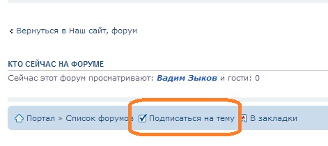 Аналогичным образом можно подписаться на целый форум (раздел форума).