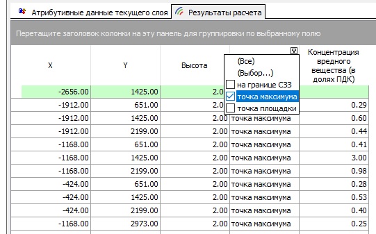 Мне нужно, чтобы программа из моих 150 расчтеных точек, выбрала мне 1 максимальную точку на жилье, 1 точку на СЗЗ и 1 точку на промзоне. В УПРЗА 3.0 такая функция была. Почему ее нет сейчас очень большой вопрос.