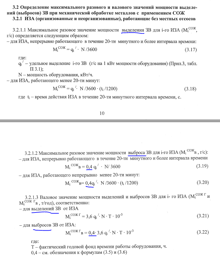 nekulikov, Так в методике же написано что 0.4 применяется при пыли металлической, 0.2 применяется для иных материалов, ну например при использовании войлочного круга. Знаете уже и методику взяла и не могу найти где вы взяли: "Больше интересует, где или как правильно использовать формулу расчета для выделений ЗВ от ИЗА, а где для выбросов ЗВ от ИЗА, которые отличаются тем самым коэф. 0,4."