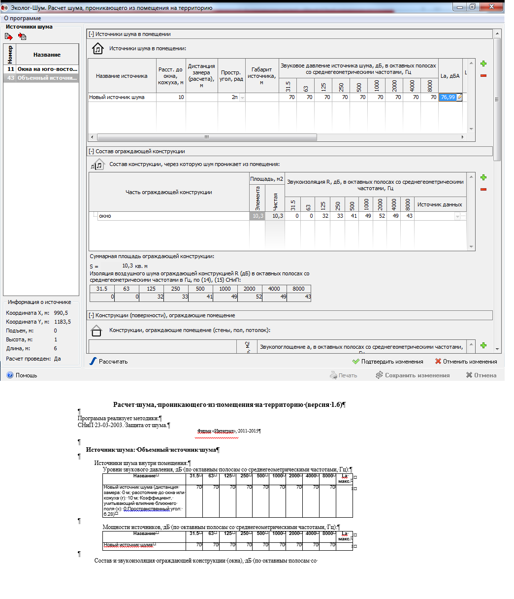 Sanya101 писал(а):Добрый день. Подскажите по методике расчета модуля "Расчет шума, проникающего на территорию из помещения". В руководстве пользователя на стр. 6 приведен коэффициент, учитывающий нарушение диффузности звукового поля в помещении и ссылка на таблицу 4 СНиП 23-03-2003.