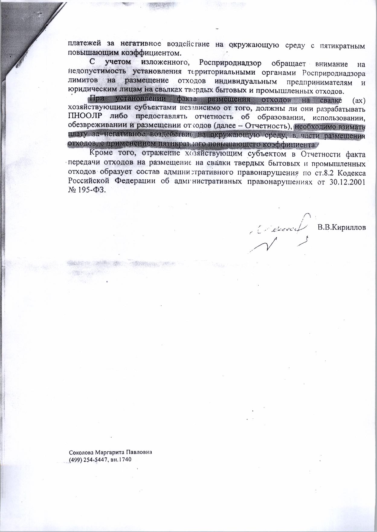 т.е. большинство из нас в октябре отправит расчет платы за НВОС и гарантированно получат штраф в 250т. и еще по голове, а кто-то и по карману от начальства? Жестко.Raccoon писал(а):Информация РПН по СЗФО с семинара от 05.09.14. Нормативы будут выдаваться только на полигоны, внесенные в ГРОРО. Если в технических отчетах или расчетах платы будут представлены документы о размещение отходов после 01 августа 2014 г. на полигоны, не внесенные в ГРОРО на момент размещения там отходов, - данные представленные материалы все будут направляться в прокуратуру с последующими возможными последствиями для организаций в виде штрафа в 250 тысяч по ст. 8.2 КоАПП