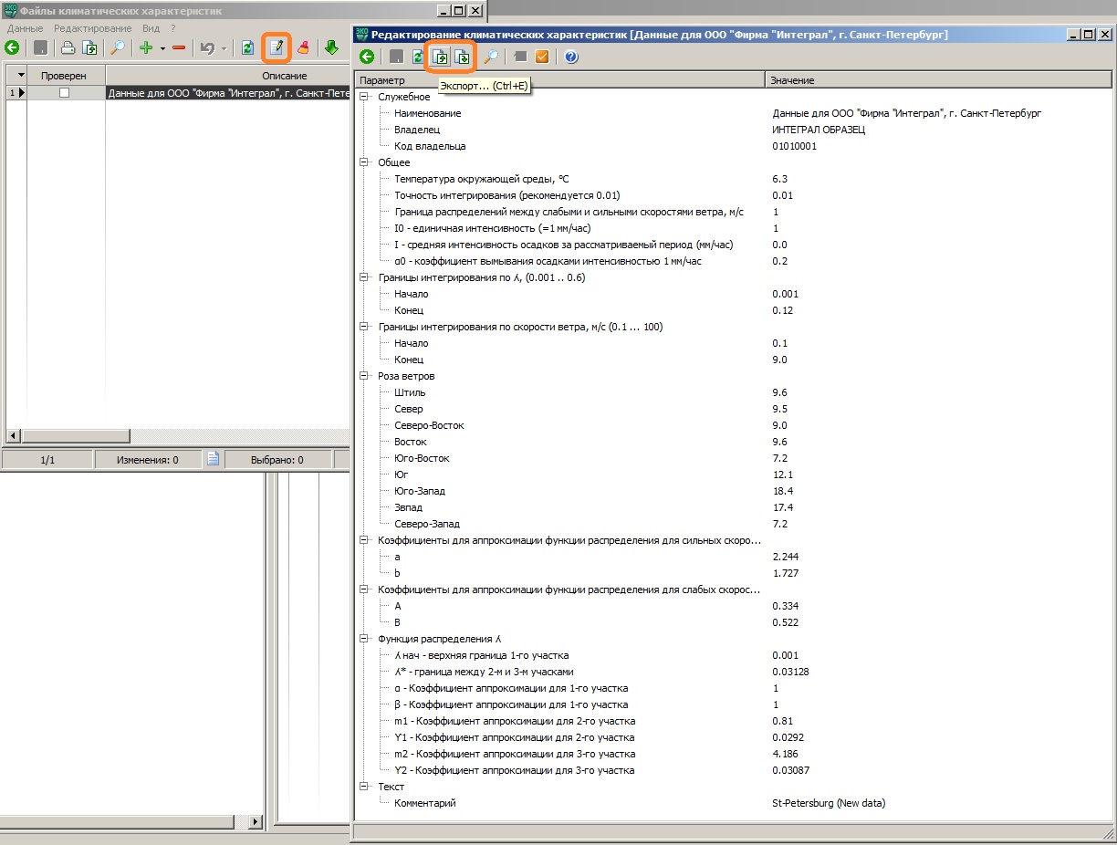 - возможность экспорта/импорта метеопараметров для расчета среднегодовых концентраций;