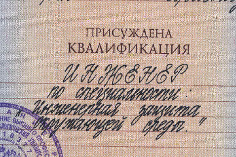 ГЭТИ, у меня в дипломе написано инженер по специальности инженерная защита окружающей среды: