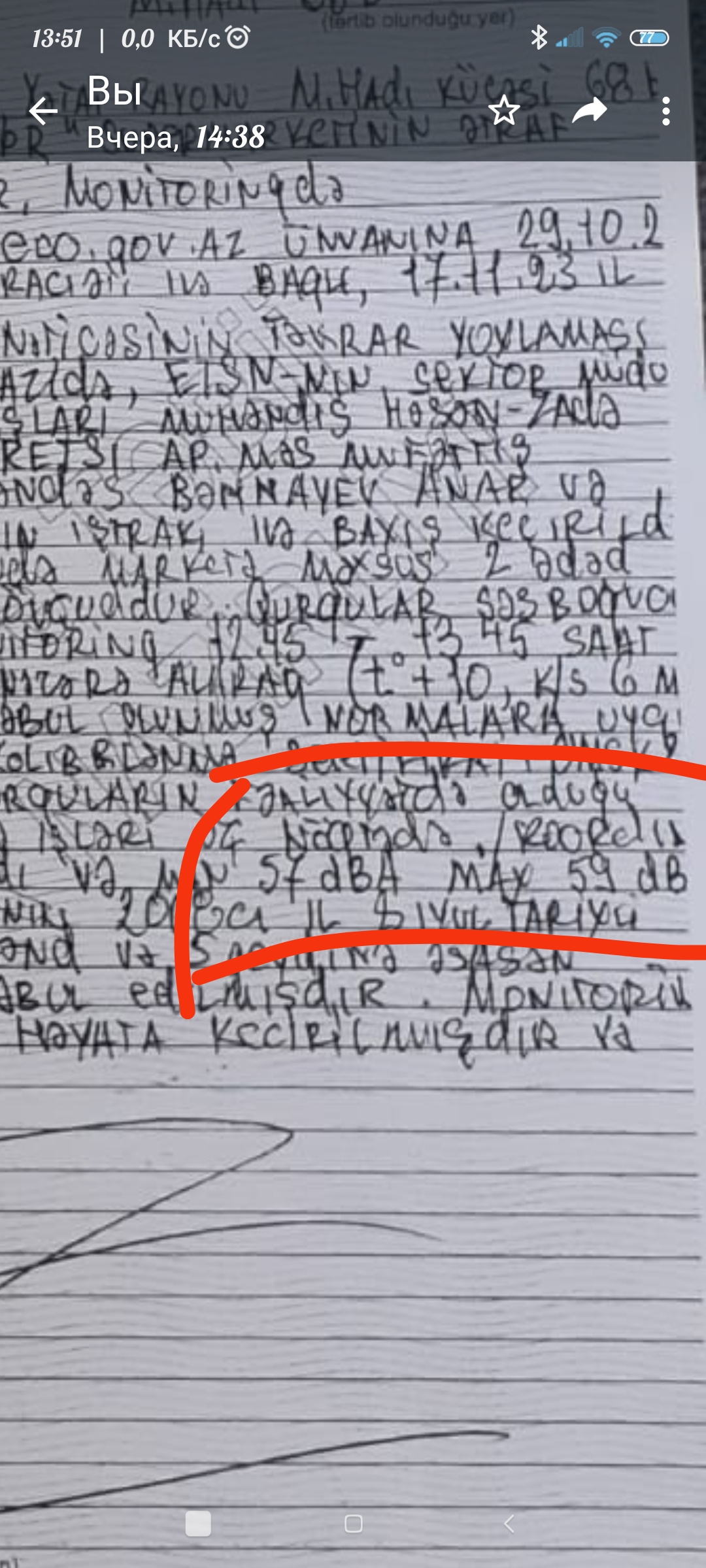 посмотрите на скриншот из программы, который я выслал выше, там указан минимальный уровень шума, максимальный уровень шума, средний уровень шума, эквивалентный уровень шума (самая нижняя строка). У вас в акте обозначены только первые два - минимальный и максимальный (это те показатели, которые непосредственно выводятся на экран). Дождитесь протокола - там должен быть указан эквивалентный уровень шума (он рассчитывается программой на компьютере по полученным с прибора данным, скриншот выше сделан непосредственно с программы для использованного вашим ведомством прибора, в России он тоже используется, есть инструкции для эксплуатации), на экране самого прибора эквивалентный уровень шума на этом приборе вы не увидите. Получите протокол и там не окажется эквивалентного уровня шума? - пишите жалобу, что замеры шума были проведены некорректно, не определен эквивалентный уровень шума в соответствии с санитарными требованиями.sadigova писал(а): 17 янв 2024, 12:52 Если мин 57 и мах 59 , тогда Л екв. чему равен ? Чему равен Л.макс?