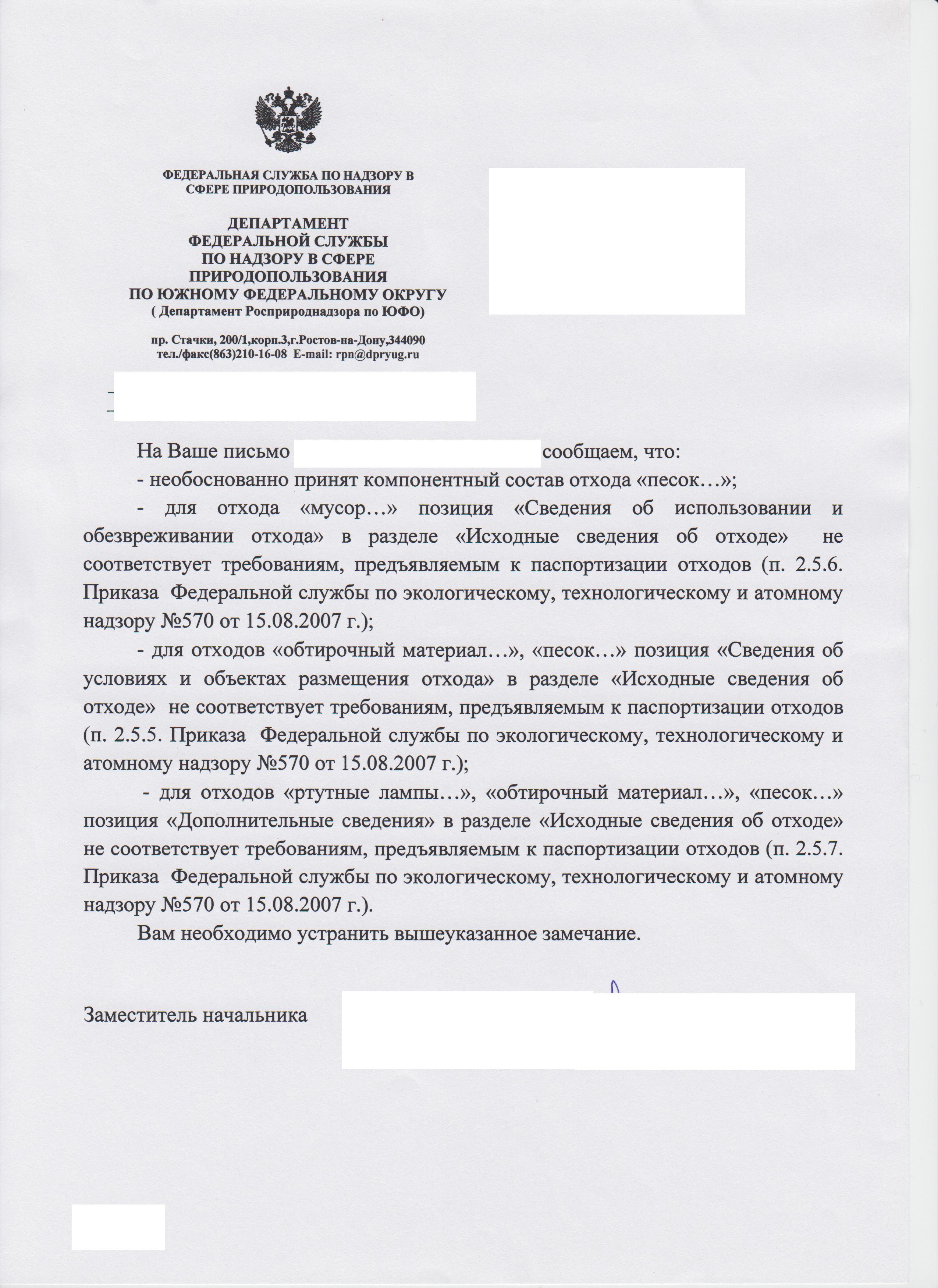 Самое интересное, что они нам написали отказ ввиду не только этих замечаний. Объекты расположены в Воронежской области, а полигон для размещения отходов - в Волгоградской. Поэтому отпинали нас от себя. Проект будем направлять в РПН по Волгоградской области, замечания по кодам отходов пока не будут исправлять, вдруг там пройдет все. :)