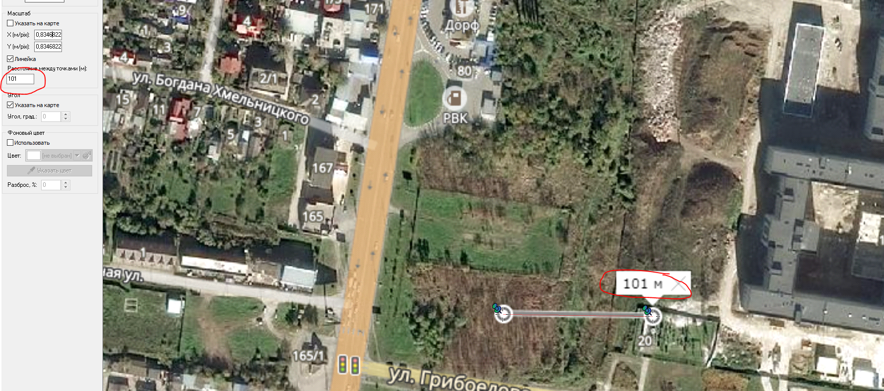 Денис_1990, значит я недостаточно верно изъяснила суть. Хорошо, тогда подскажите мне пожалуйста, как правильно установить масштаб, если я знаю расстояние между двух точек на подложке. так как в итоге у меня на данный момент ширина неорганизованных источников получается вместо 100 м - 100000 м.