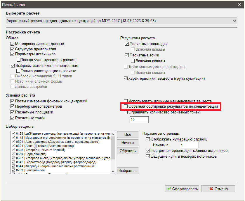 Здравствуйте. При формировании отчета снимаю галочку у "Обратная сортировка результатов по концентрации", однако в отчете, в результатах расчета в расчетные точки группируются не по порядку, а все равно по концентрации. Как сформировать отчет, с сортировкой результатов по нумерации точек?