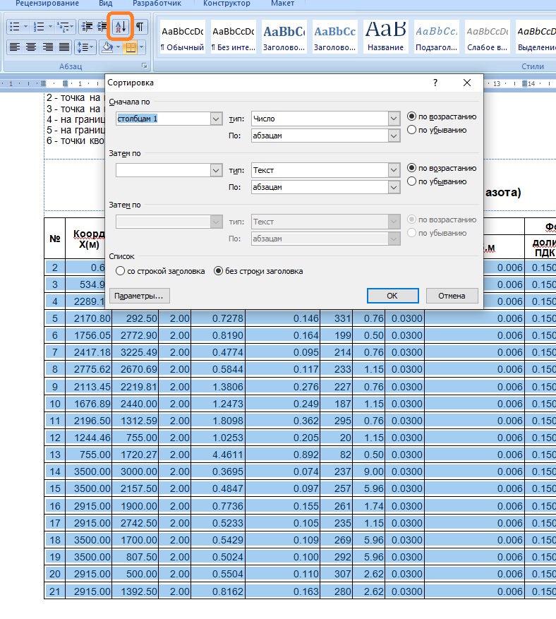 Отсортировать по номерам точек сейчас можно только уже средствами Word.