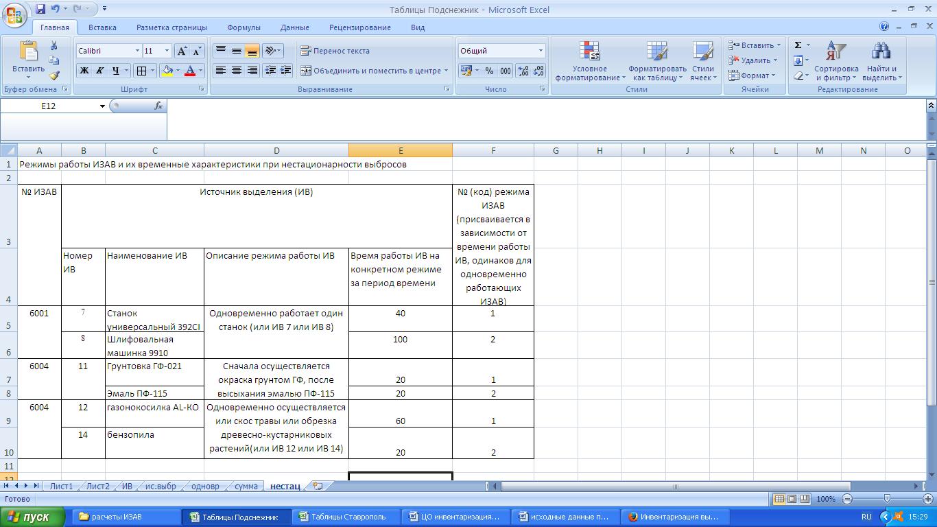 Добрый день. Подскажите как вы заполняете таблицы нестационарности работы источников: к примеру не одновременно работают деревообрабатывающие станки (один работает, а другой нет) или при окраске сначала окрашивают поверхность грунтовкой, а после высыхания уже покрывают эмалью?