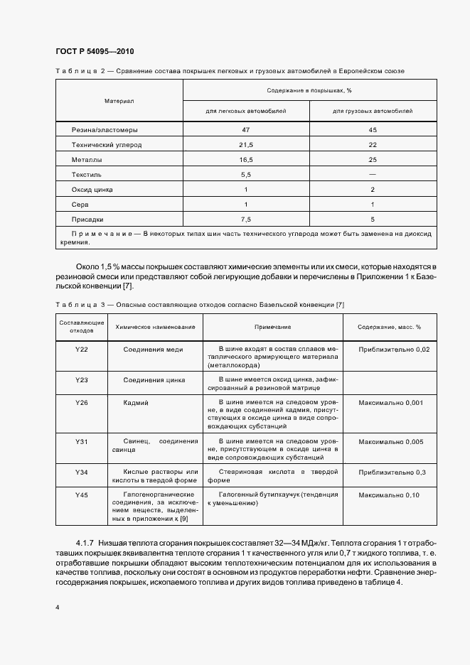 Я использовала для компонентного состава покрышек ГОСТ Р 54095-2010. Ресурсосбережение. Требования к экобезопасной утилизации отработавших шин.
