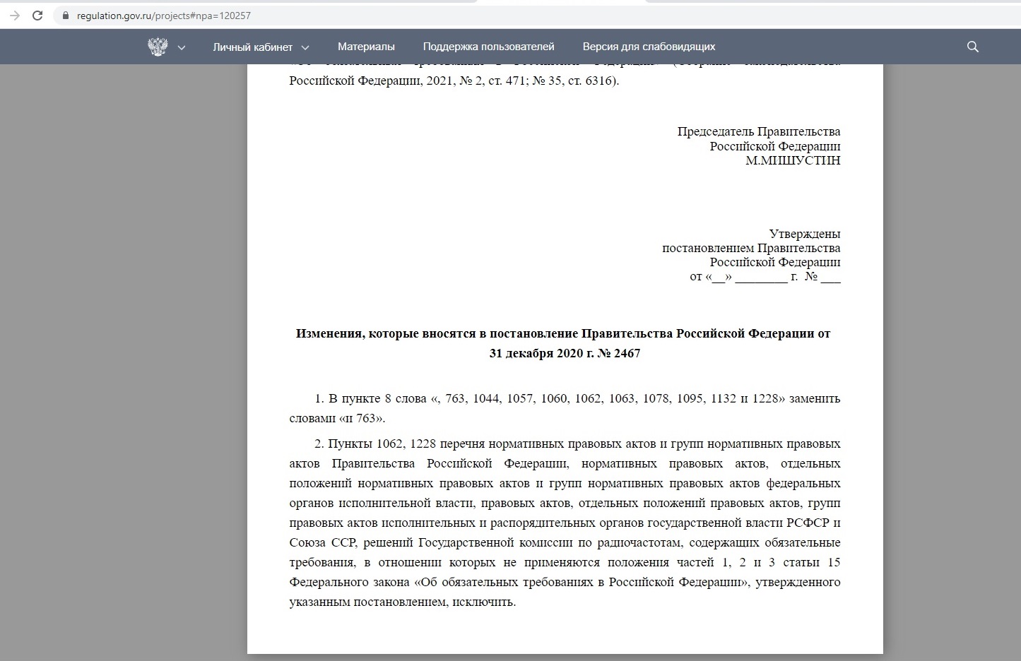 Похоже не ту ссылку скопировала, там много изменений в ПП 2467: https://regulation.gov.ru/projects#npa=120257