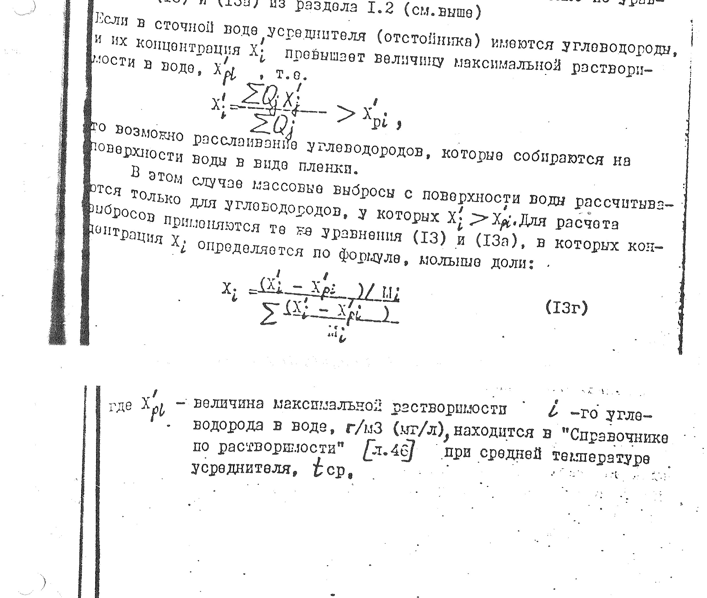 Смотрю ваш вариант расчета, ток мне интересно откуда вы взяли такую весовую концентрацию в % у меня в таблице 2.3.4. РД-17-86 намного выше значения! По предельным углеводородам 82,38% , непредельным 5,54% бензол 2,6 толуол 5,57%, ксилол 2,77%, фенол 0,39% и сероводород 0,75%Потапова Юлия писал(а):В данном случае рассматриваются очистные сооружения поверхностного стока на АЗС, соответственно большая часть продукта в резервуарах очистки - это вода. Остальное - смытая с асфальта пленка бензинов и ДТ.Расчет для ловушечного продукта рассчитывается по C12 - C19 в соответствии с Приложением 14 (уточненное) "Концентрация загрязняющих веществ (% по массе) в парах различных нефтепродуктов" Методические указания по определению выбросов загрязняющих веществ в атмосферу из резервуаров. Новополоцк, 1997, ЗАО “ЛЮБЭКОП”. Дополнение к “Методическим указаниям по определению выбросов загрязняющих веществ в атмосферу из резервуаров (Новополоцк,1997)”. СПб, 1999, НИИ Атмосфера