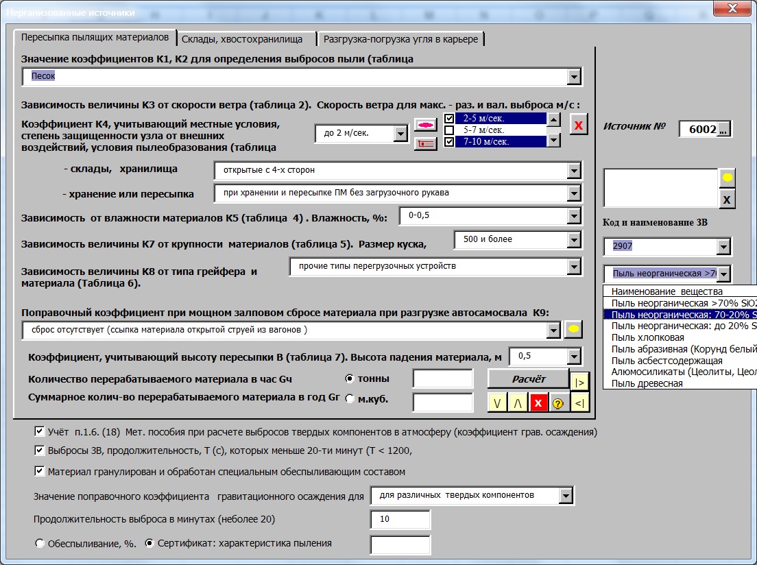 Продолжительность выброса (залпового сброса с самосвала) составляет 10 сек. при средней интенсивности поступления ЗВ в атмосферу.
