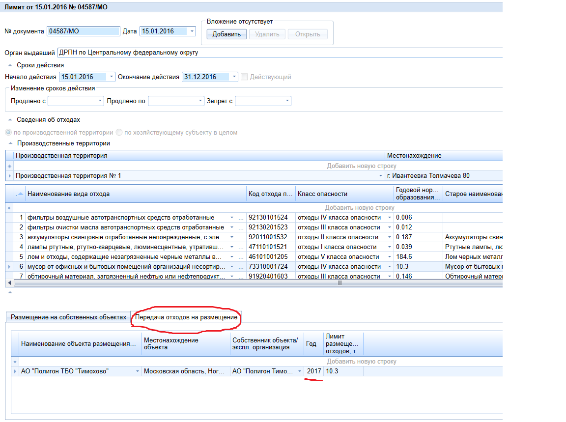 Ранее рассматривали проблему , когда лимиты не подставляются в декларацию. Вроде нашли ошибку в том что именно в самом лимите во вкладке ниже не было указано на какой полигон конкретно вывозят отходы.НаталияР писал(а): 27 фев 2018, 08:17Доброе утро! У меня две декларации будет в разные субъекты РФ. Проблема состоит в том, что никак лимиты не могу прикрепить к расчетам по отходам.