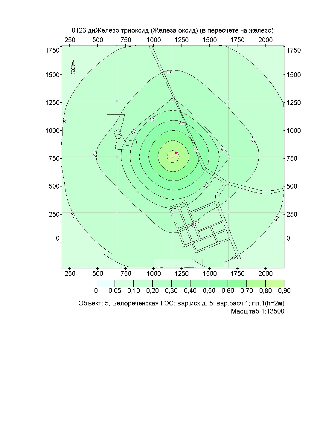 Янат, если у вас при задании расчетной площадки У1=У2=750 м, ширина расчетной площадки = 2000 м, а шаг сетки = 500 м, то карта выглядит правильно.