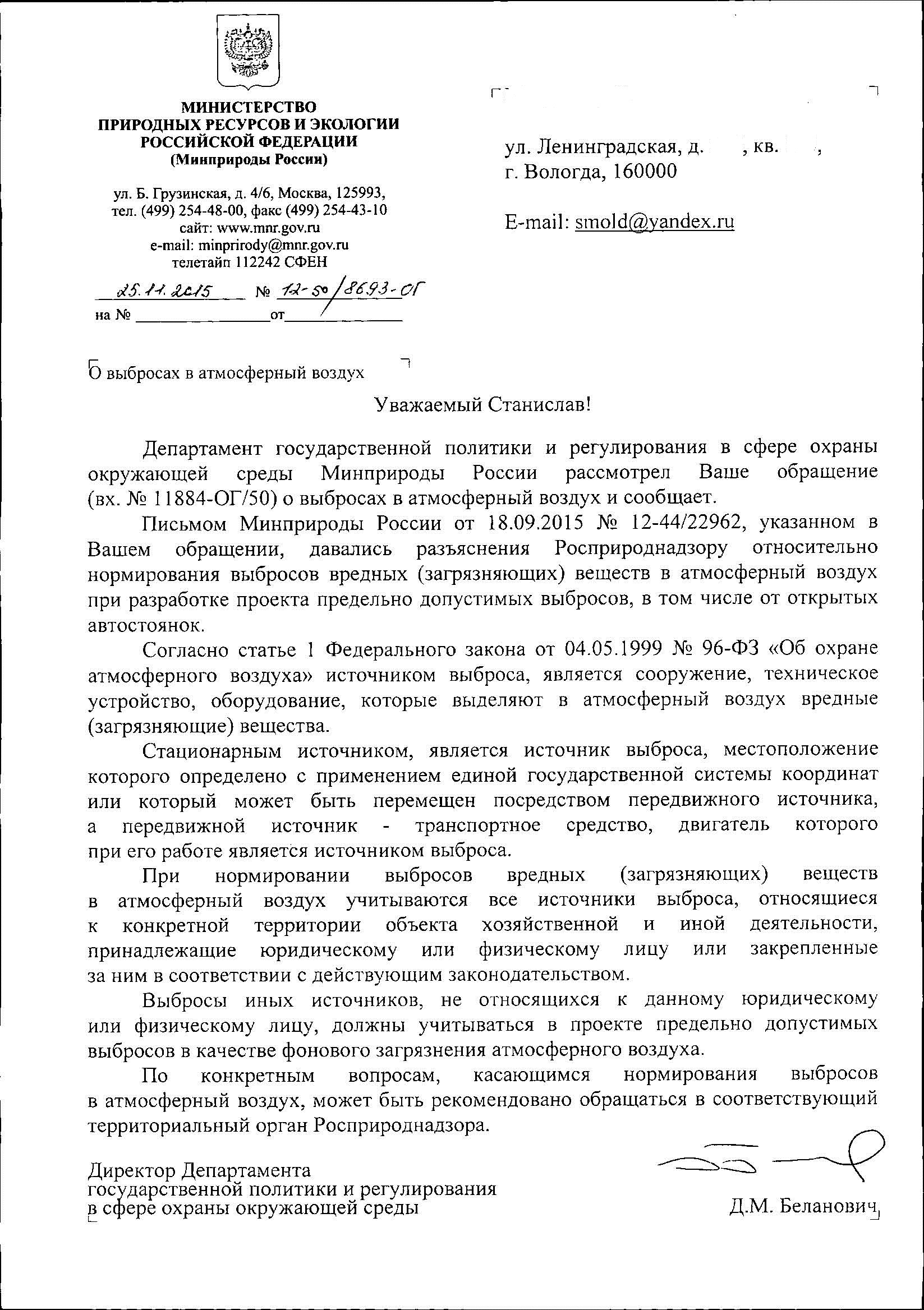 Вот прям так официально и написали? Какому еще физическому лицу??? Давно ли у нас устанавливаются нормативы физическим лицам? может я что-то пропустила...smold писал(а): в продолжение, разъяснение этого письма Минприродой...Спойлер