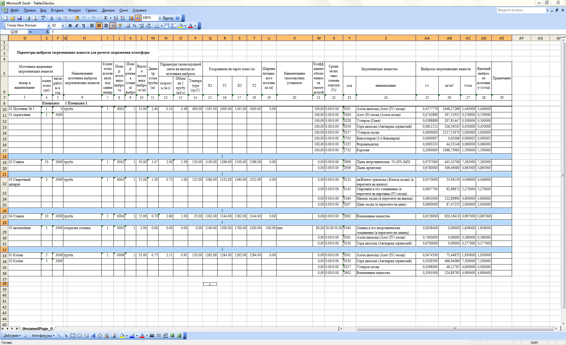 Скорее всего, будет достаточно обновить релиз программы до самого свежего, так как сейчас эта таблица после экспорта в Excel выглядит вот так Можно сказать и посмотреть таблицу из архиваOleg8212 писал(а): Таблица "Параметры выбросов загрязняющих веществ для расчета загрязнения атмосферы". В данной таблице появились пустые строки после каждого источника, причем они ужаты до такой степени что их просто не видно, при это они объединены в одну общую ячейку. Отредактировать такую таблицу просто невозможно. Хорошо еще если у тебя мелкое предприятие на 5-10 источников, а если там их 70-100, то такую таблицу отредактировать вообще не возможно.