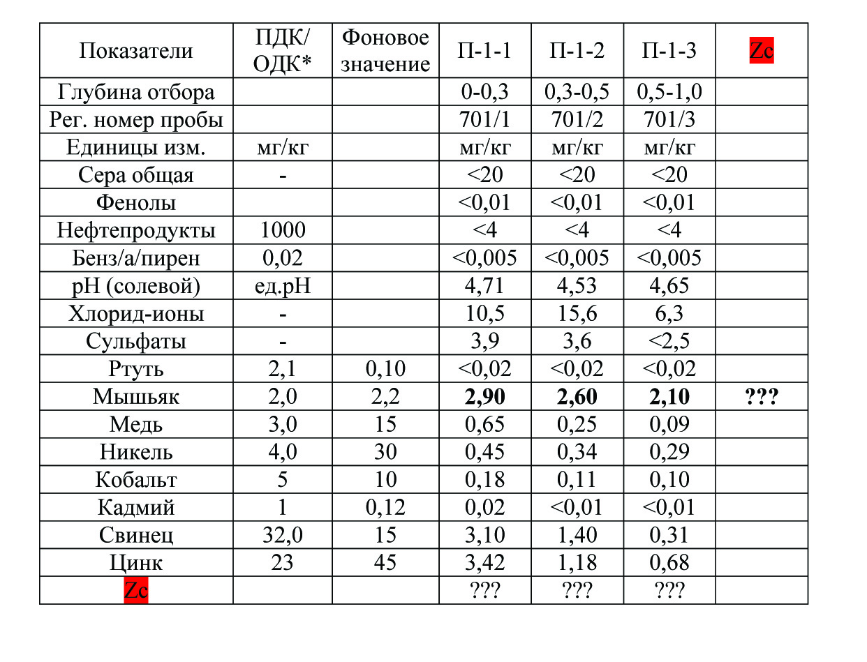 Превышение фона только у мышьяка. Считаю по вертикали Zс.