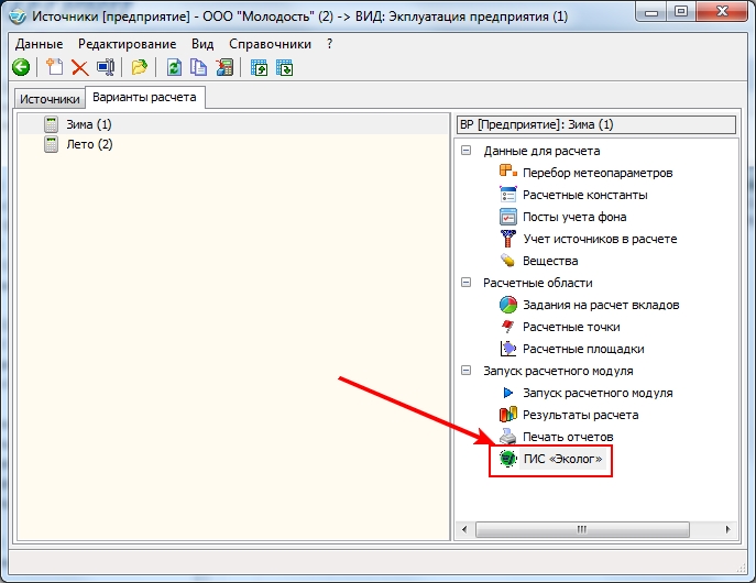 Вызвать ГИС можно из Варианта исходных данных (рис. внизу). Или из Варианта расчета (рис. вверху).
