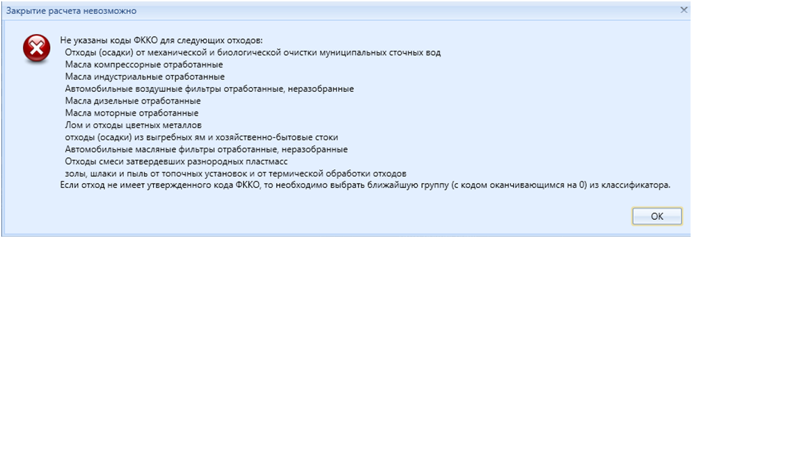 Программа предлагает исправить ошибку (файл №1), подставив группу, но при попытке заменить конкретный отход на группу - код ФККО все равно остается пустым...