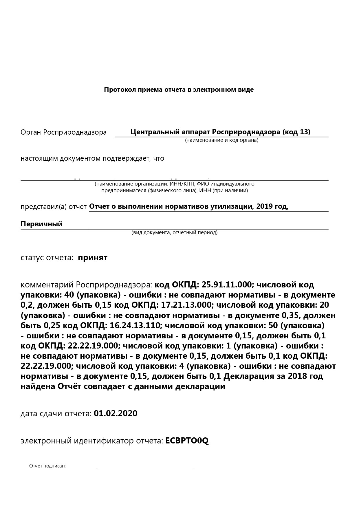 Здравствуйте, подскажите, пожалуйста - направила Декларацию о выпущенных товарах за 2019 год, отчетность о нормативах утилизации в 2019 году за товары выпущенные в 2019, экосбор за 2019 год с применением нормативов утилизации, установленных на 2019 год. Пришел ответ с Росприроднадзора об ошибочно примененных нормативах - судя по замечанию - просят принимать нормативы утилизации, установленные на 2018 го. Я совсем запуталась. Делала в Контуре.