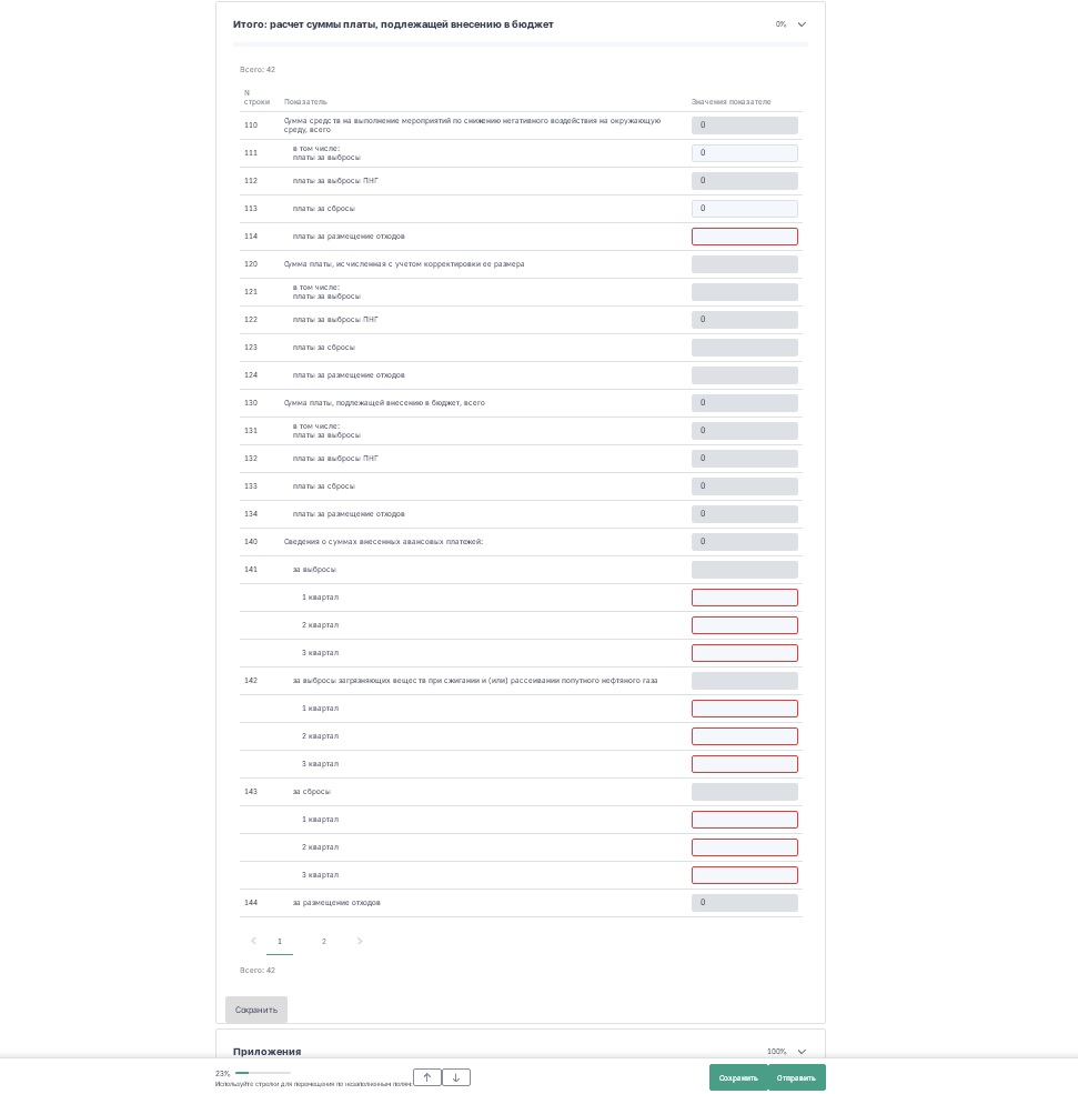 У меня в итоговом разделе не меняются данные после внесенных в другие разделы изменений - я сначала забивал в одну декларацию выбросы и отходы. Но выяснилось,что в моем случае нужно в разные террорганы подавать выбросы и отходы. Я потер раздел по выбросам,чтобы потом сделать отдельную декларацию на них. И перезабил отходы по-новой, т.к. нашел некоторые ошибки у себя. А итоговый раздел все равно отображает мне плату за выбросы, которые я уже потер и посчитанную плату за отходы до изменений.