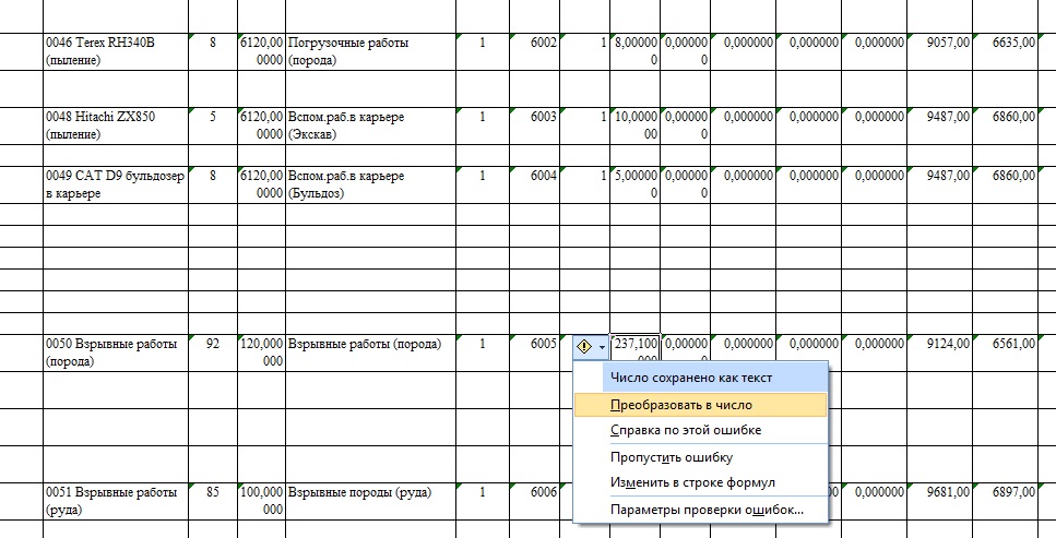 Осталось только научить программу форматировать числа в числовой формат, чтобы пользователю не приходилось вручную преобразовывать их во всех ячейках с зеленым треугольничком в верхнем левом углу и будет хорошо.