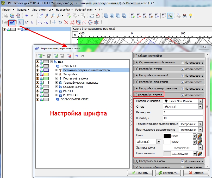 1. Как убрать или изменить положение надписей и размер номеров источников на карте? Они накладываются друг на друга, не читаются и общая картинка становится грязной. В УПРЗА-Эколог я просто размер шрифта ставила 0 и у меня номера не отображались на карте. Их все равно там в масштабе не видно.