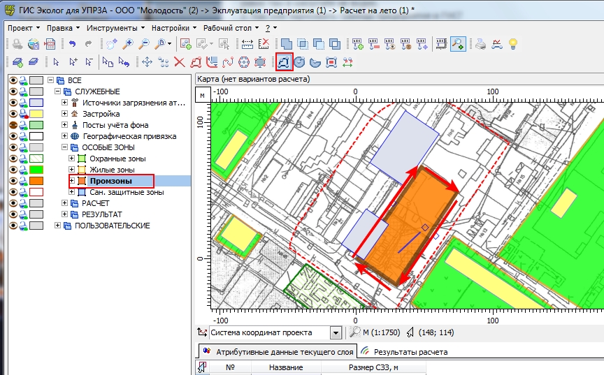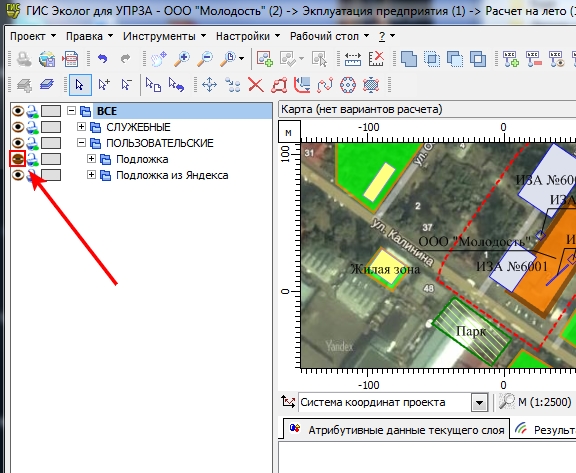 "ГИС-Эколог" нужно запустить из "Варианта расчета"