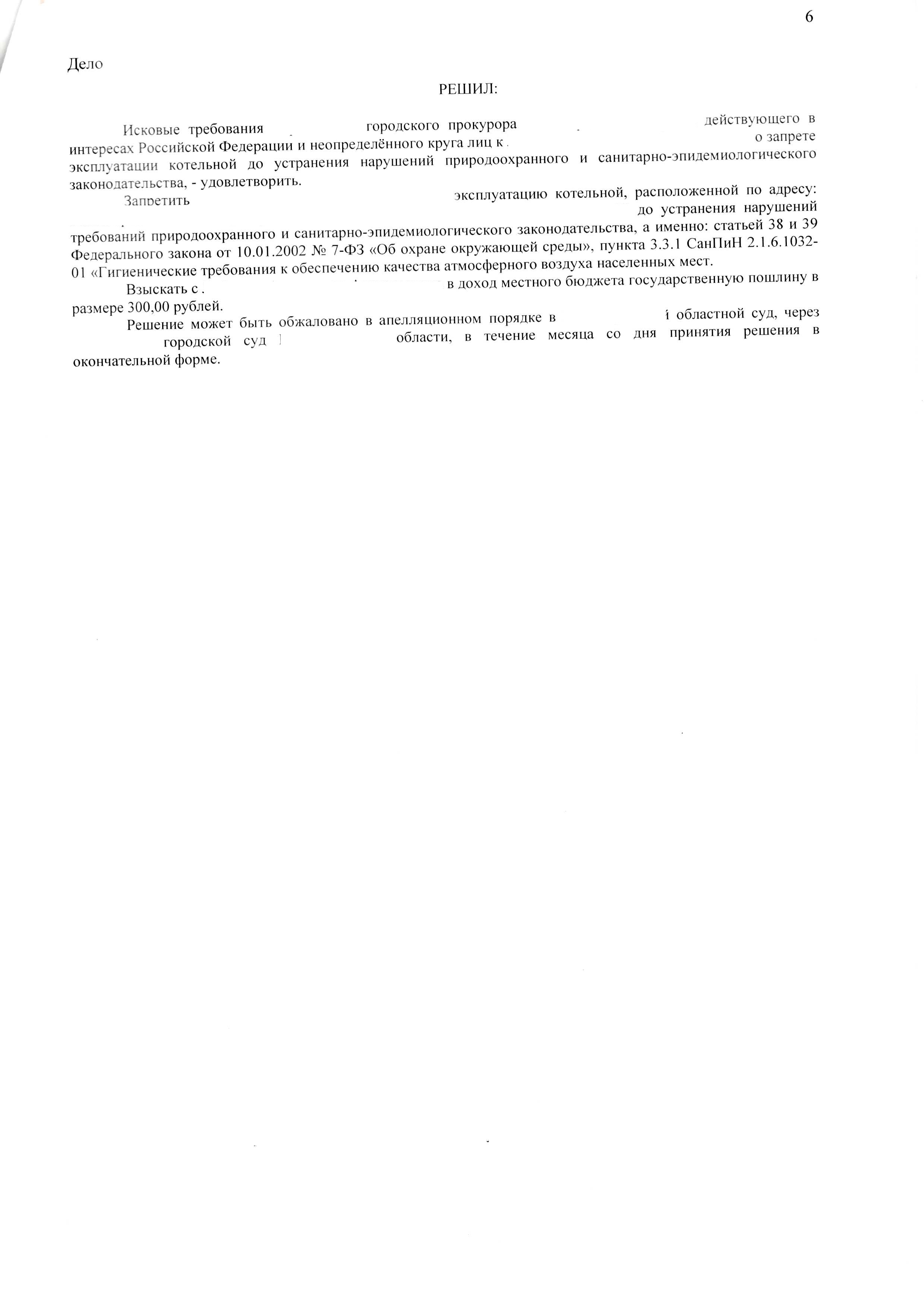 котел не бытовой конечно. Но суд одновременно указывает, что процедура оформления разрешения распространяется на ЮЛ и ИП, и тем не менее обязывает устранить нарушенияПтица писал(а): 24 авг 2018, 16:23Это смотря какую котельную он эксплуатирует. Ни за что не поверю что на бытовой котел который отапливает дом с ФЛ потребуют разрешение на выброс. Тогда получается больше половины россиян кто отапливает частный дом должен его получать.