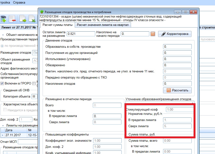 Проблема в том, что модуль пишет ставку платы за размещение отходов равной единице. Соответственно, считает неправильно. Как это можно исправить?