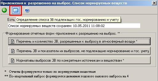 Нужно нажать на кнопку "Определения списка ЗВ подлежащих гос. нормированию и учету"