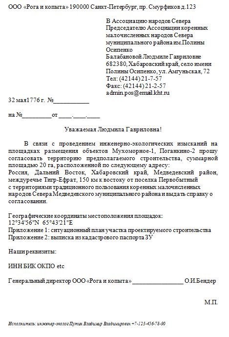 Дальневосточная писал(а): 1) по ТТП - сначала запрос в Минприроды ХК о их наличии (там создан отдел по коренным малочисленным). Если выдадут, что нет таких территорий в районе размещения объекта - ничего согласовывать не нужно.