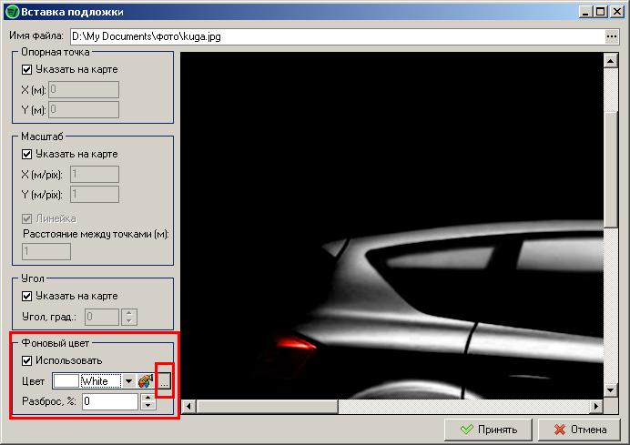 При вставки подложки вы можете выбрать какой цвет подложки будет для программы прозрачным.
