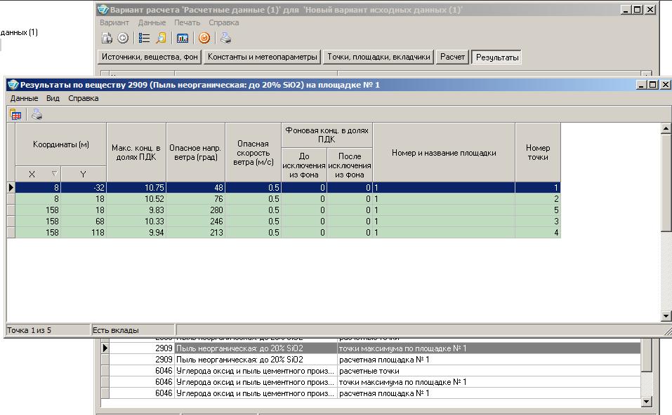 Провожу расчет для стройплощадки. Результаты расчета приземной концентрации показывают, что максимальная концентрация в долях ПДК для неорганической пыли составляет 10,75 - на графика те же значения. Но при формировании отчета для пыли выдаются намного большие значения: Cm/ПДК = 127,9595. Причем изменение размерности (мг/куб.м. или доли ПДК) при формировании отчета никак не влияет на значение Cm/ПДК, выводимое в отчете и остается равным 127,9595. Такая же ерунда и по другим веществам. [mebiro]